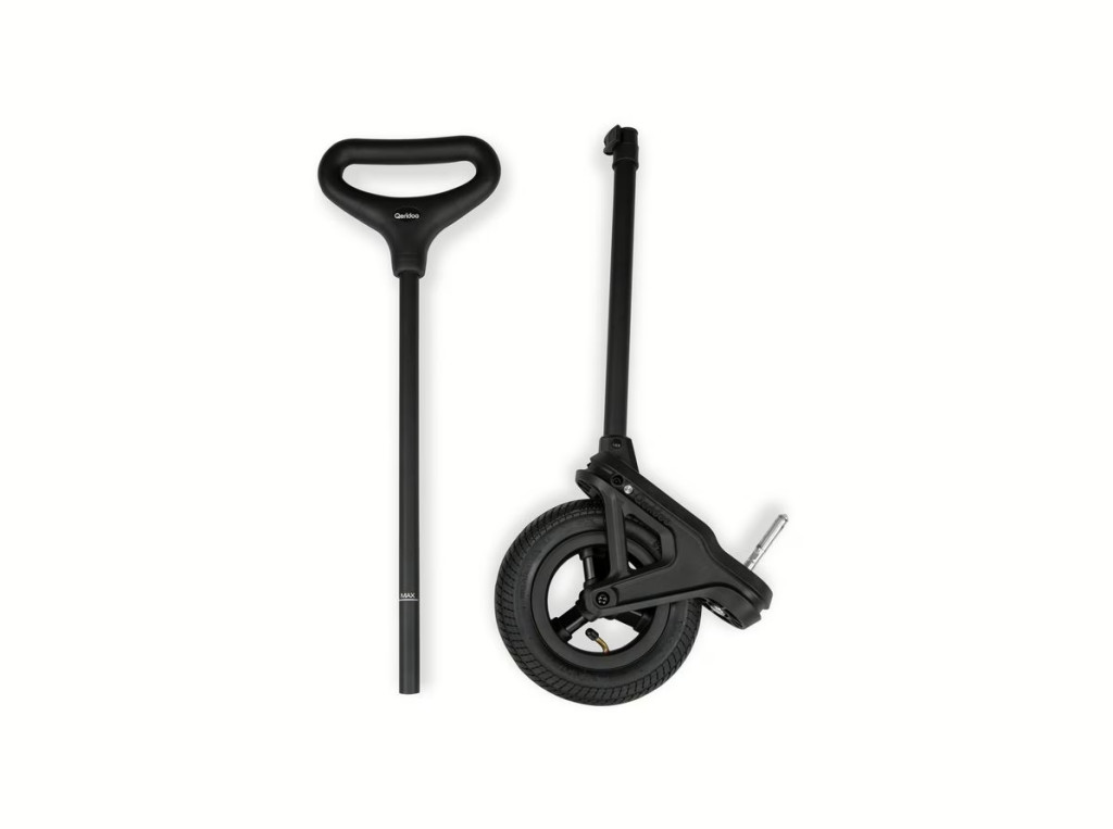 Vonórúd Qeridoo Qubee csomagszállító utánfutóhoz, melynek segítségével az utánfutó kézikocsivá alakítható, és még sokrétűbb használatot tesz lehetővé.